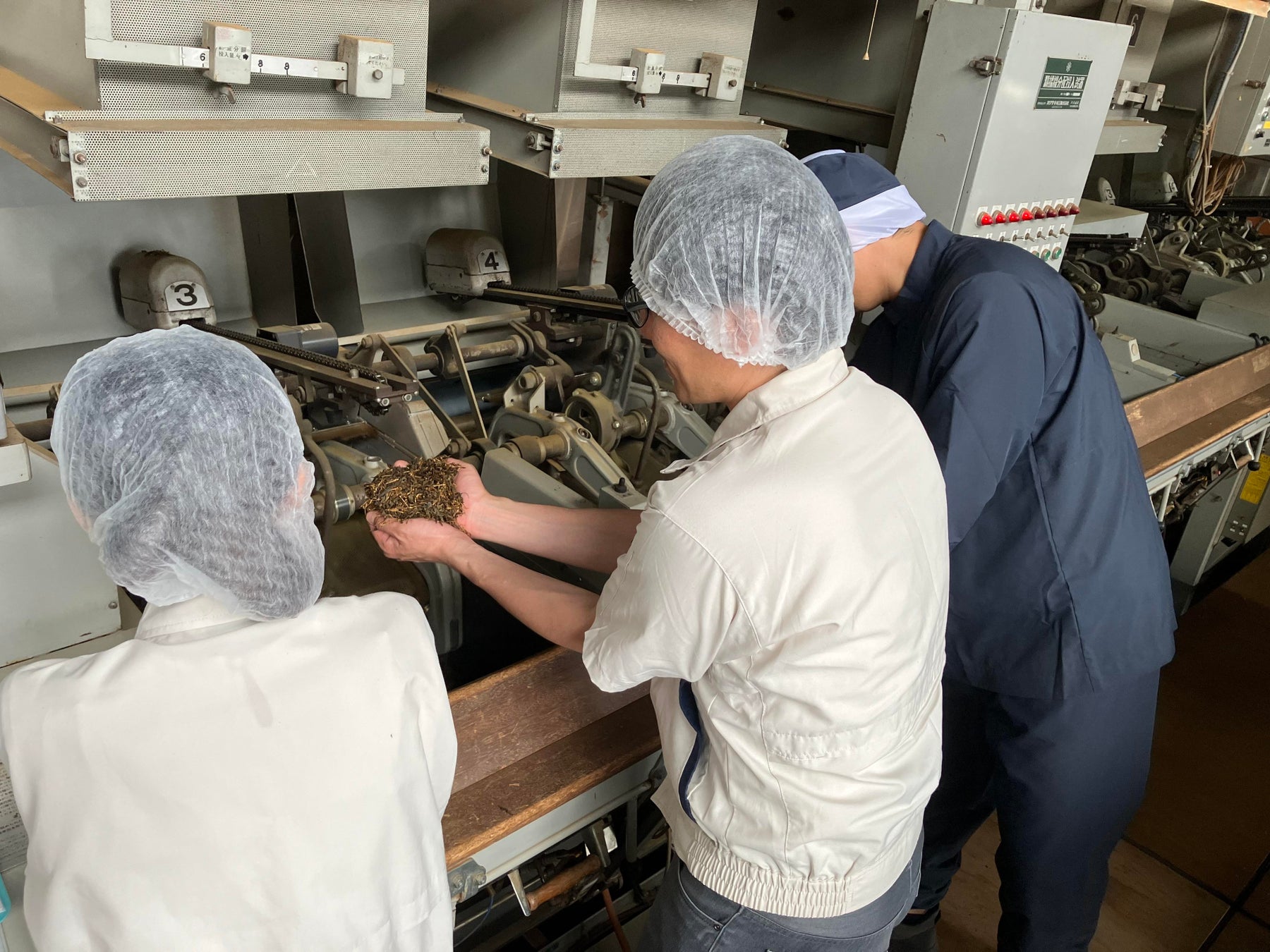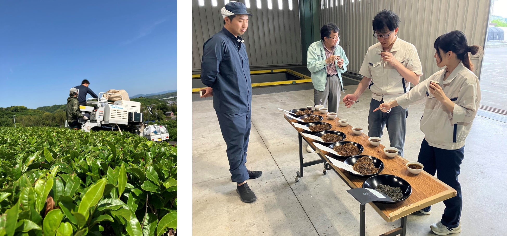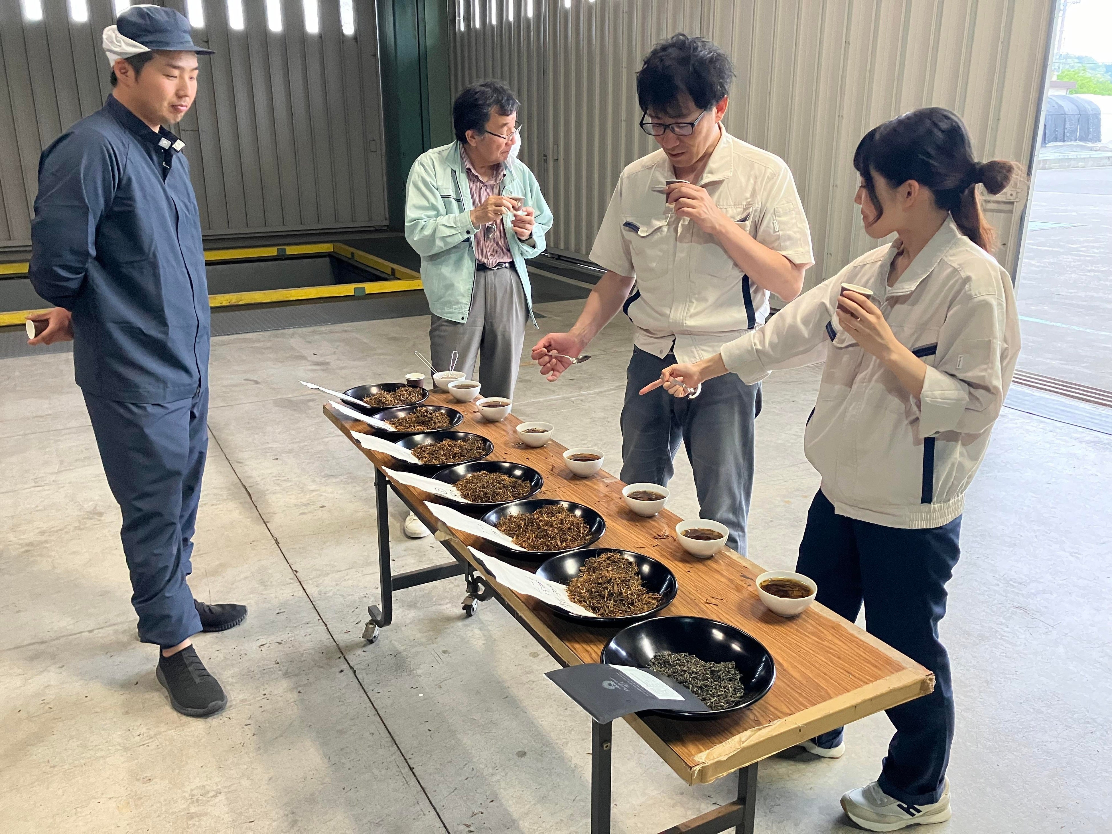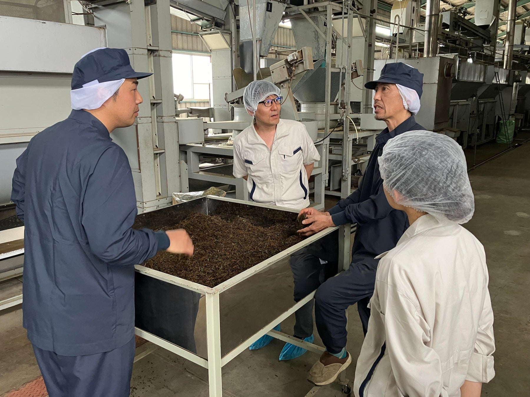 海外の紅茶ではできない、「華やかで香り高く、すっきりしつつもコクのある味わい」の紅茶葉の量産化を目指し、実際に静岡県の丸新柴本製茶に赴き、茶園の職人とともに茶園をみながら茶葉の発酵条件を詳細に検討しています。1回目の試作製造は2024年5月14日(火)、2回目は6月17日(月)、3回目は7月22日(月)に行い、茶葉の発酵条件の試作検討を行いました。