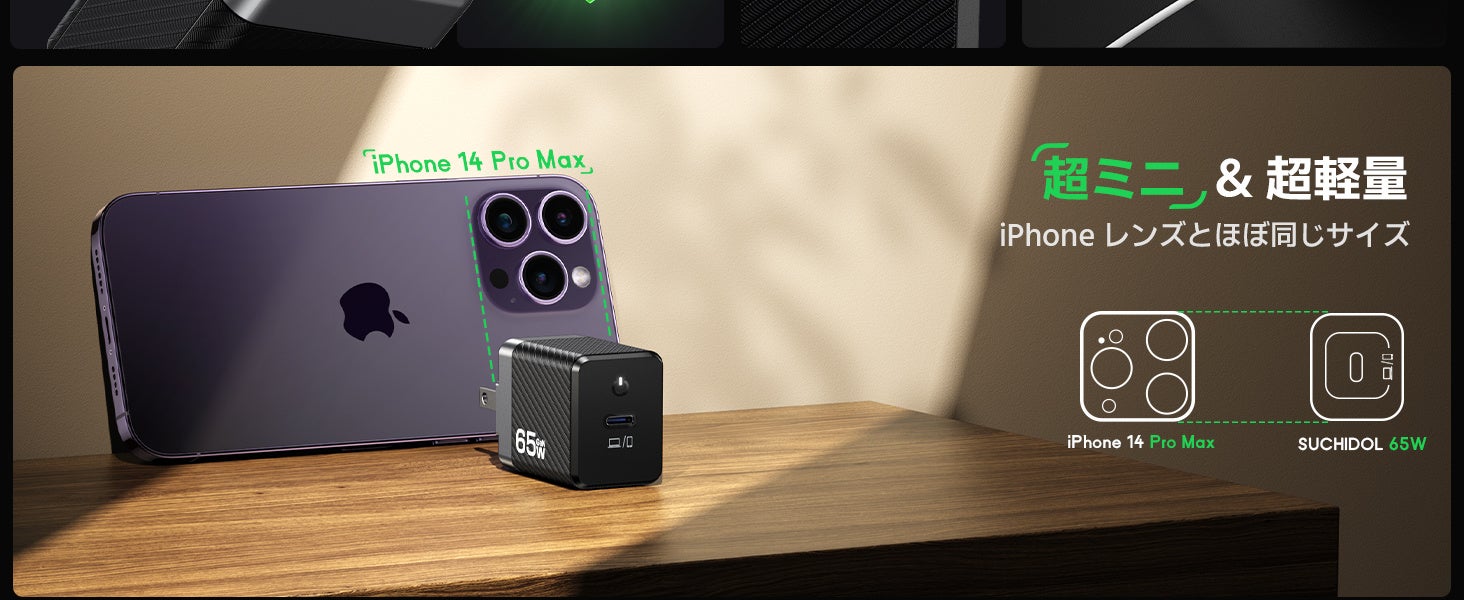 SUCHIDOLは数年間にわたり、充電分野に注力し、従来のかさばる充電器から脱却。新たに開発された「S-mini」65W充電器は、その携帯性と軽量さで、充電器の新しい基準を打ち立てました。サイズはわずか2.8x4x5.3cm、重さは91gと、どんな小さなスペースにも収まり、旅行や出張に最適な選択です。折りたたみ式プラグで、カバンの中の物を傷つける心配もありません。