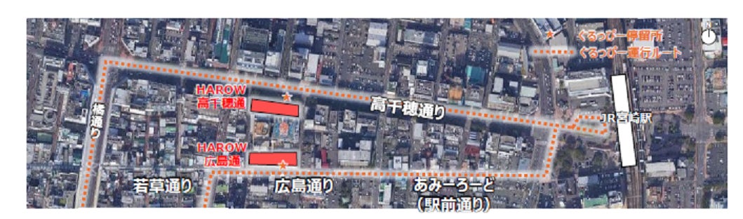 ※1 広島通りに新設される停留所名は「HAROW広島通」となり、また高千穂通りにある停留所名は「NTT前」から「HARO