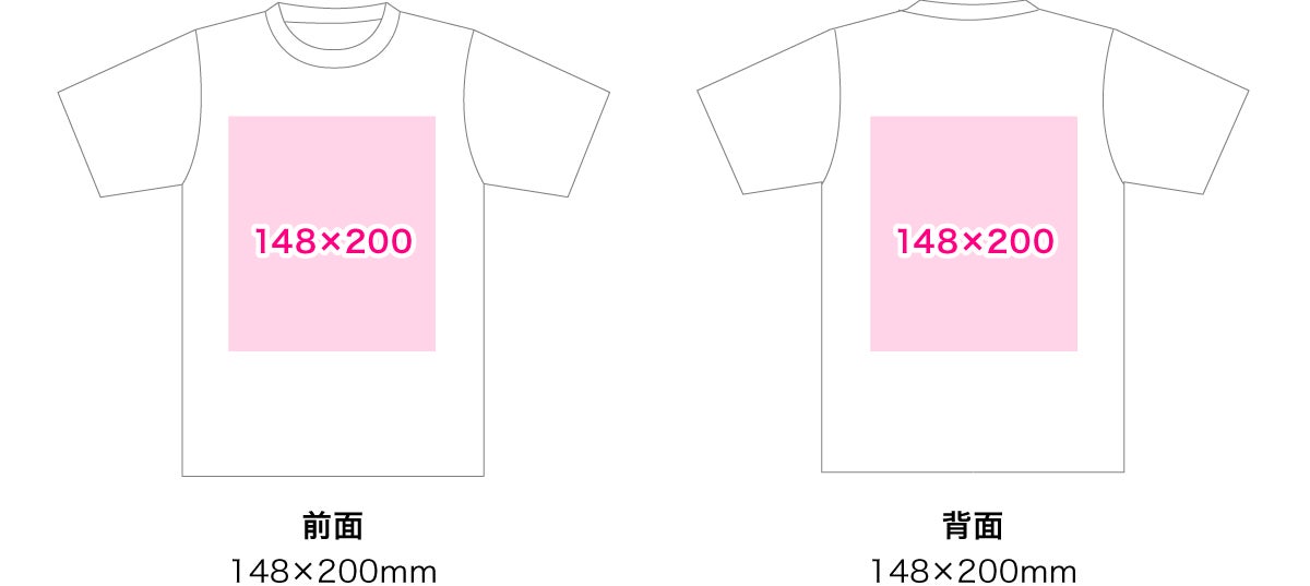 また、複数箇所に異なるデザインで印刷を行うことができ、ベビーTシャツでは前面に148×200mm、背面に148×200mmの大きさで、最大2箇所への印刷が可能です。