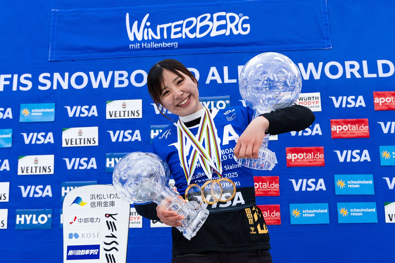 ワールドカップ全17戦を通して、道具の変更や調整をしながら、集中力を切らさず戦い切ったことは私自身そしてチーム全体としても新しいチャレンジとなりました。大会はもとよりスノーボード アルペンが楽しい!という気持ちでい続けられたこと。そして、たくさんの応援をいただけたことは私にとって幸せそのものです。世界選手権を含め全19戦のうち15戦で表彰台に上がれ、その様子を日本にお届けできて、今はほっとしている一方、おとした4戦への悔しさも入り混じっています。