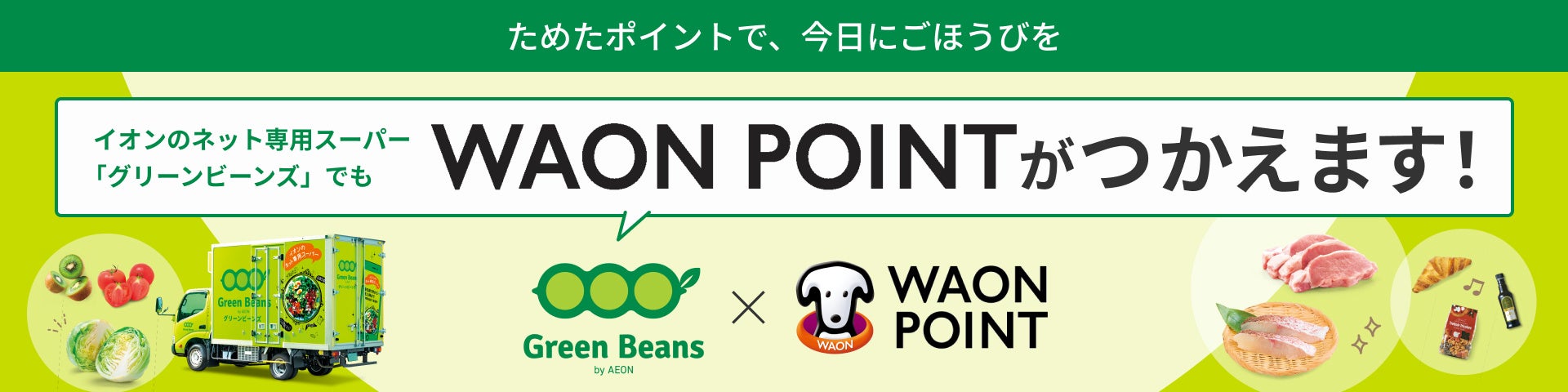 グリーンビーンズのサービス拡充、1月7日よりWAON POINTでのお支払いに対応