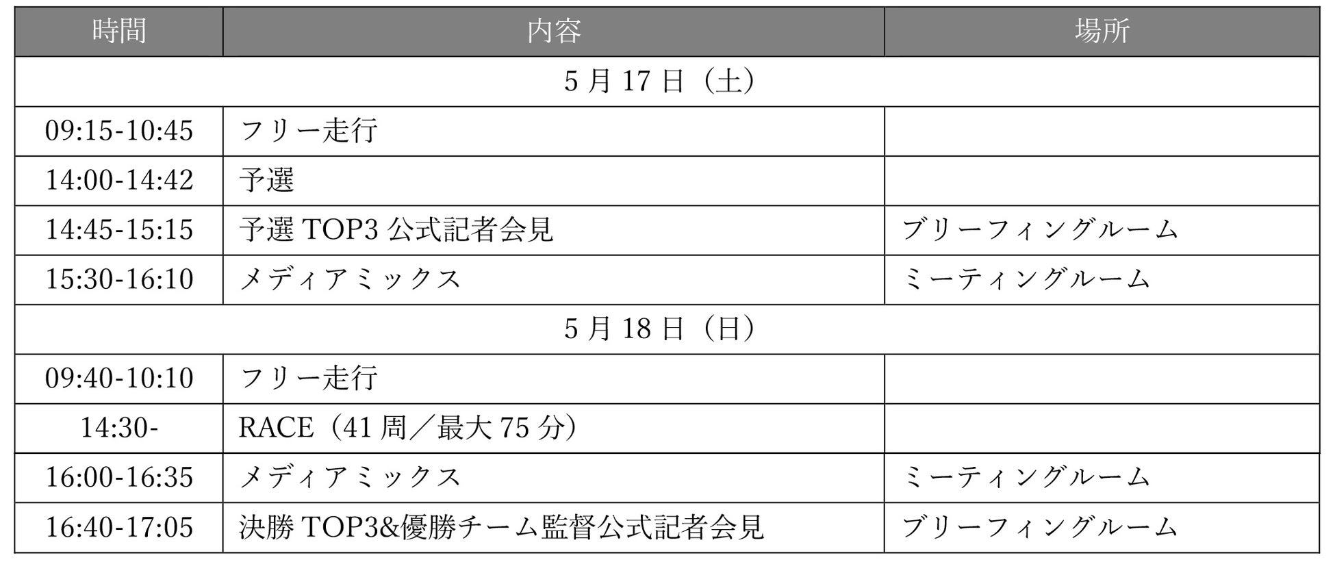 2025 SUPER FORMULA Rd.5 ⼤会スケジュール(暫定版)