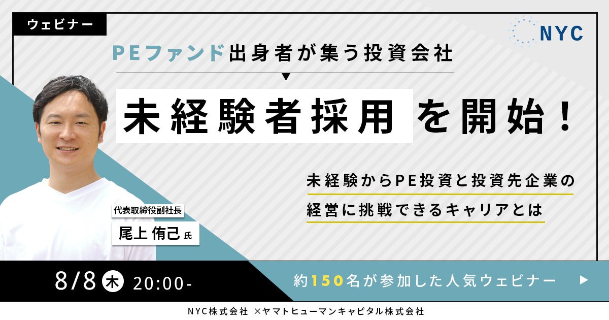 【8/8開催】PEファンド出身者が集う投資会社が未経験者採用を開始!未経験からPE投資と投資先企業の経営に挑戦できるキャリアとは | NYC
