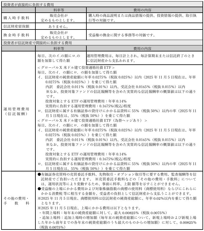 グローバルX 米ドル建て投資適格社債 ETF(為替ヘッジあり) |