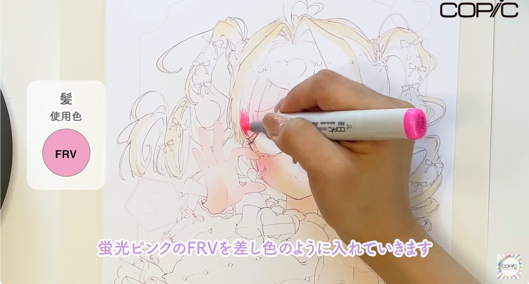 多くのプロの漫画家やイラストレーターも愛用する「コピックスケッチ」を使用して描かれており、コピックのアルコールマーカーらしい鮮やかさが際立つ、可愛い女の子イラストが目印です。