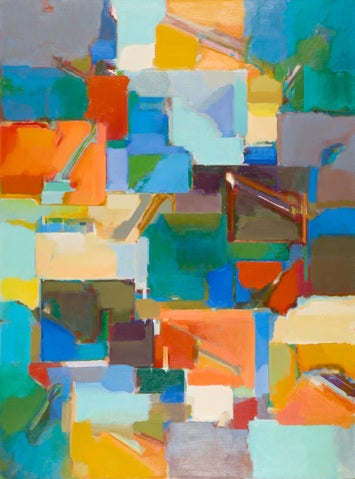 その絵はアメリカ・モダンアートと共鳴するかのような現代抽象の鼓動を感じさせる一方で、画面を紡ぐような繊細な色彩の調和はどこか日本的な美を宿しています。