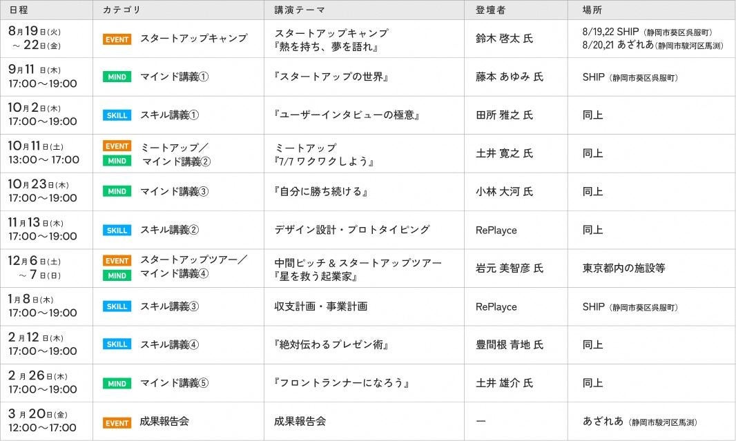 ※スタートアップキャンプ、スタートアップツアーに関する旅費と宿泊費はプログラム運営側の負担となります(詳細は受講者に別途ご案内します)。