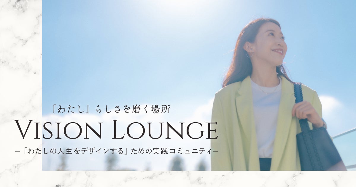 「『わたしの人生をデザインする』ための実践コミュニティ」をコンセプトに掲げる『Vision Lounge』は、ストレングスファインダー®や仲間との対話を通じて、自分らしい未来を実現するための女性専用オンラインサロンです。