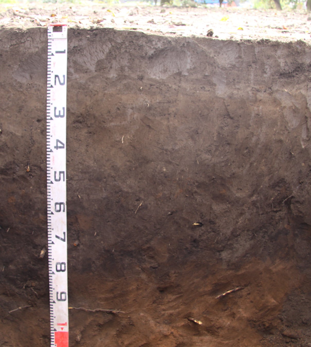 写真左:ドロツケされた畑の断面 約50㎝より上がドロツケされたもの。それより下が元の地表面で、火山灰由来の黒い土ができている。