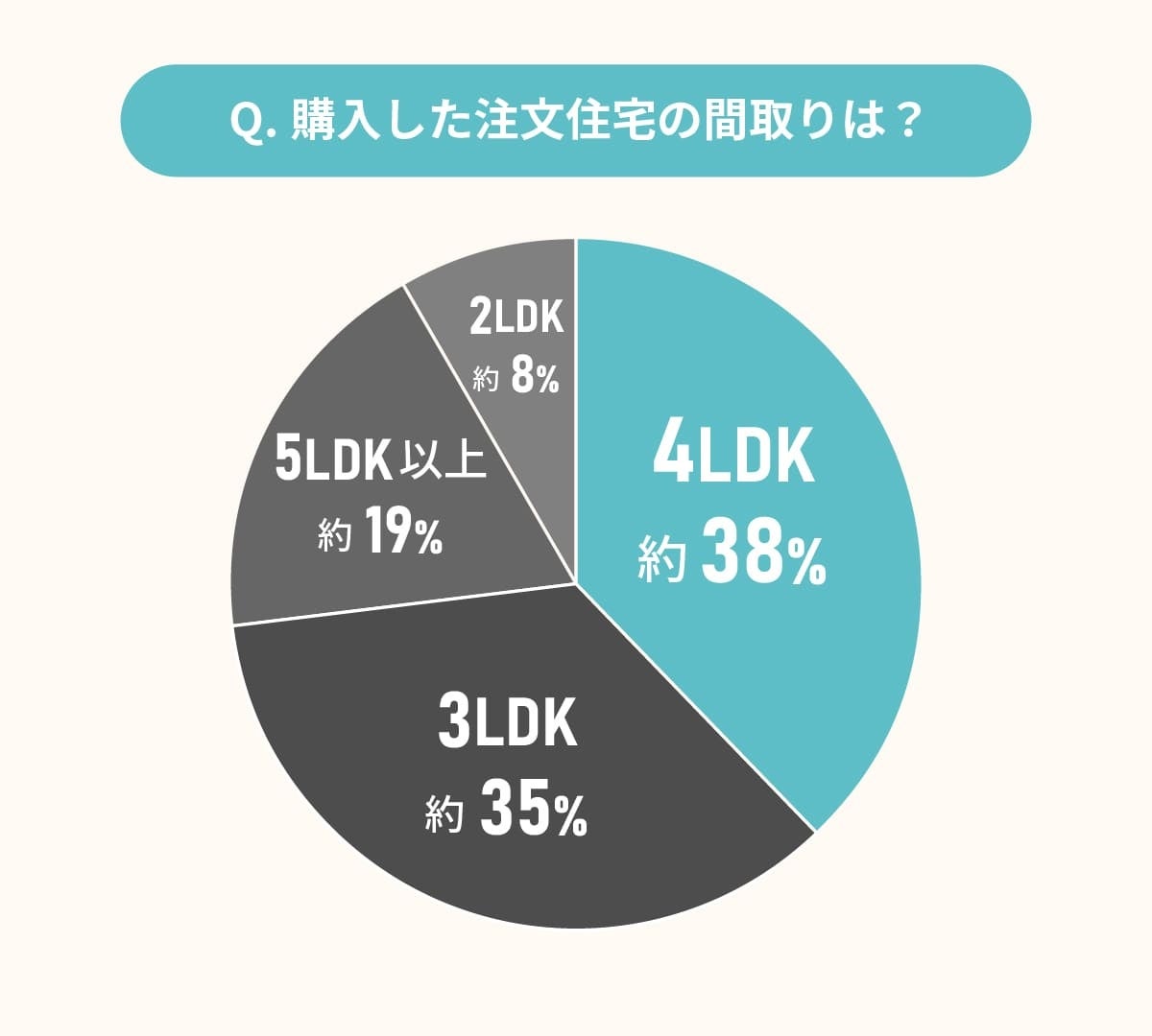 最多は「4LDK」の約38%でした。次いで「3LDK」も約35%とこちらもほぼ同等の結果に。その他、「5LDK以上」や「2LDK」の間取りを選んだ人も一定数いました。