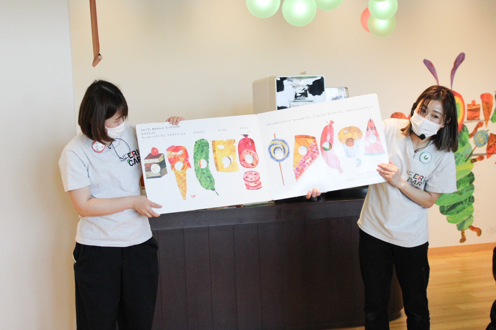 たくさんの親子とともに、エリック・カールの代表作『はらぺこあおむし』を大型絵本で楽しみます。