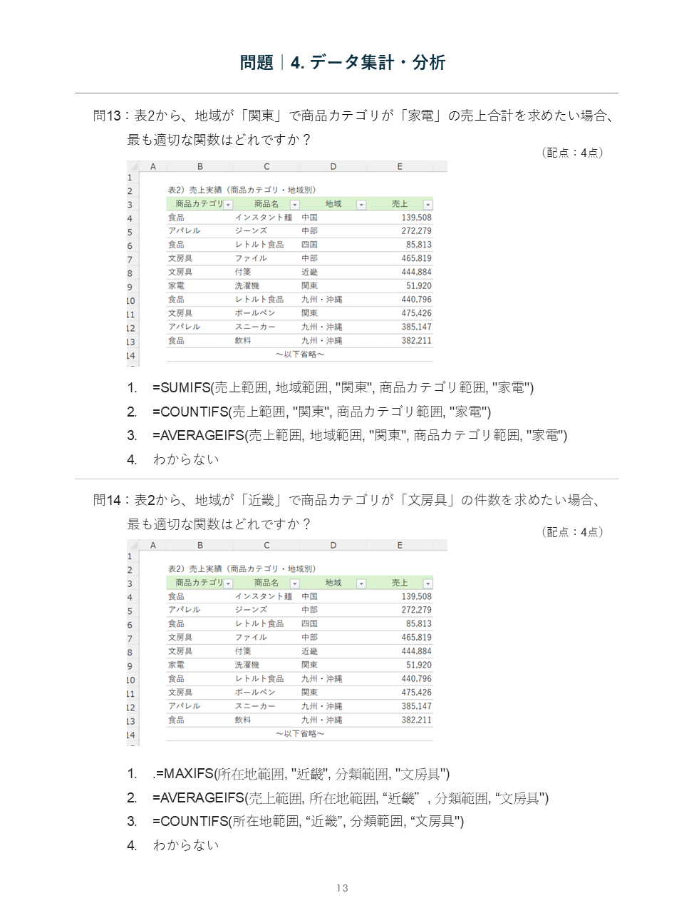 本診断は単なる知識を問うクイズではなく、実際の売上データやテーブル操作を想定した「実務再現型」の診断です。(以下画像は設問・解説の一部抜粋です)
