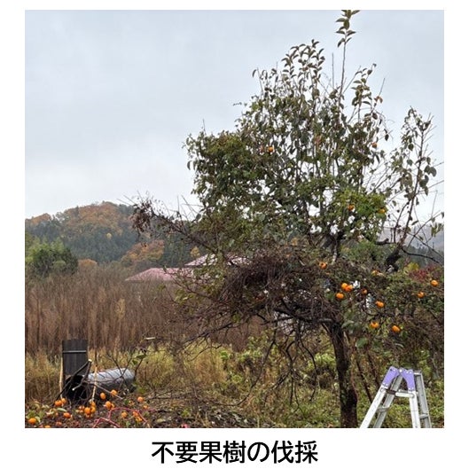 ヤブの刈払い・雑木林伐採費用の補助、柿の実などの不要果樹伐採費用の補助
