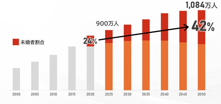 高齢者等終身サポート(身元保証)事業について、現在では、その事業者の数は400を超える状況となっています。このような事業者増加の背景にあるのは、単身高齢者の増加にあります。おひとりさま高齢者の数はいまや900万人を超えるといわれています。