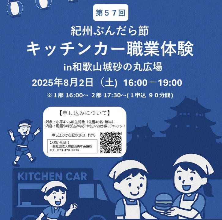 一般社団法人和歌山青年会議所(所在地:和歌山市西汀丁36番地 和歌山商工会議所5F)は、2025年8月2日(土)に和歌山城公園砂の丸広場にて、小学生向けの「キッチンカー職業体験イベント」を開催いたします。