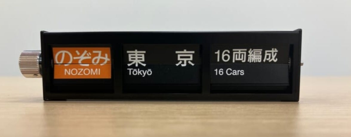 商品説明:かつて東海道新幹線の駅に設置されていた反転フラップ式表示器を、実際に製造していた新陽社がミニチュア化しました。「パタパタ」と動作する機構は本物と同様の構造を再現しています。実機を知るメーカーならではの精度をお楽しみいただけます。