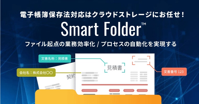 電子帳簿保存法対応はクラウドストレージにお任せ!AIによる自動化も組み込んだ日常業務をテクノロジーで支える「SmartFolder™」提供開始