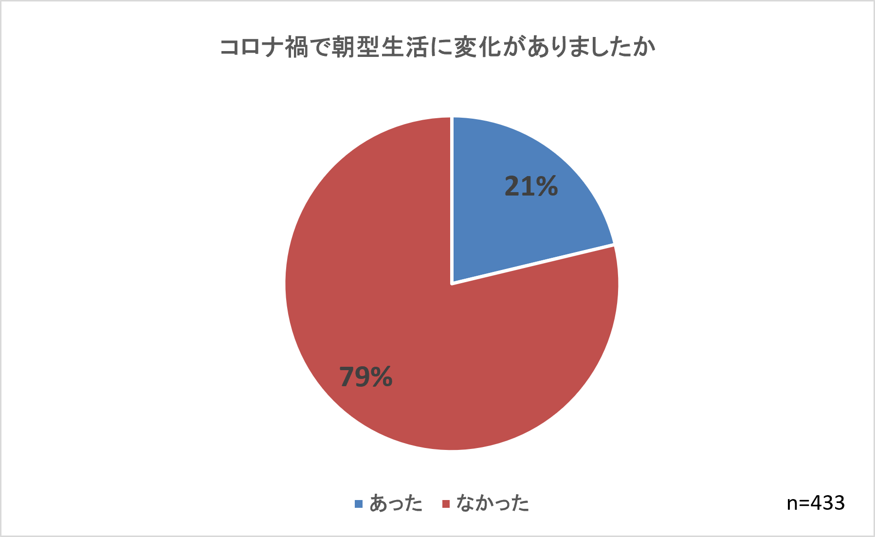 - コロナ禍での朝型生活、5人に1人が「変化あり」