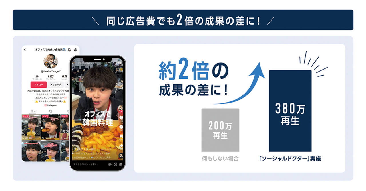 食品系アカウント:伸びる訴求軸を発見し、同じ広告費でも再生数が約2倍以上の成果の差に!