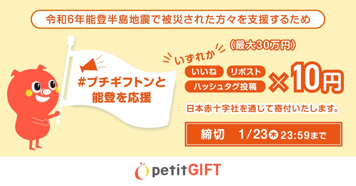 ③@petitgift_mdpと「 #プチギフトンと能登を応援 」をつけてポスト。