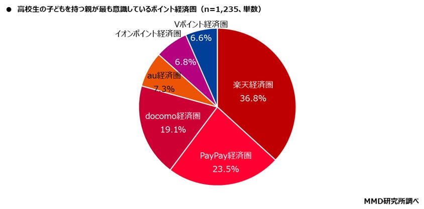 高校生の親が最も意識している経済圏は「楽天経済圏」、次いで「PayPay経済圏」「ドコモ経済圏」最も活用の共通ポイントは「楽天ポイント」、次いで「PayPayポイント」「dポイント」