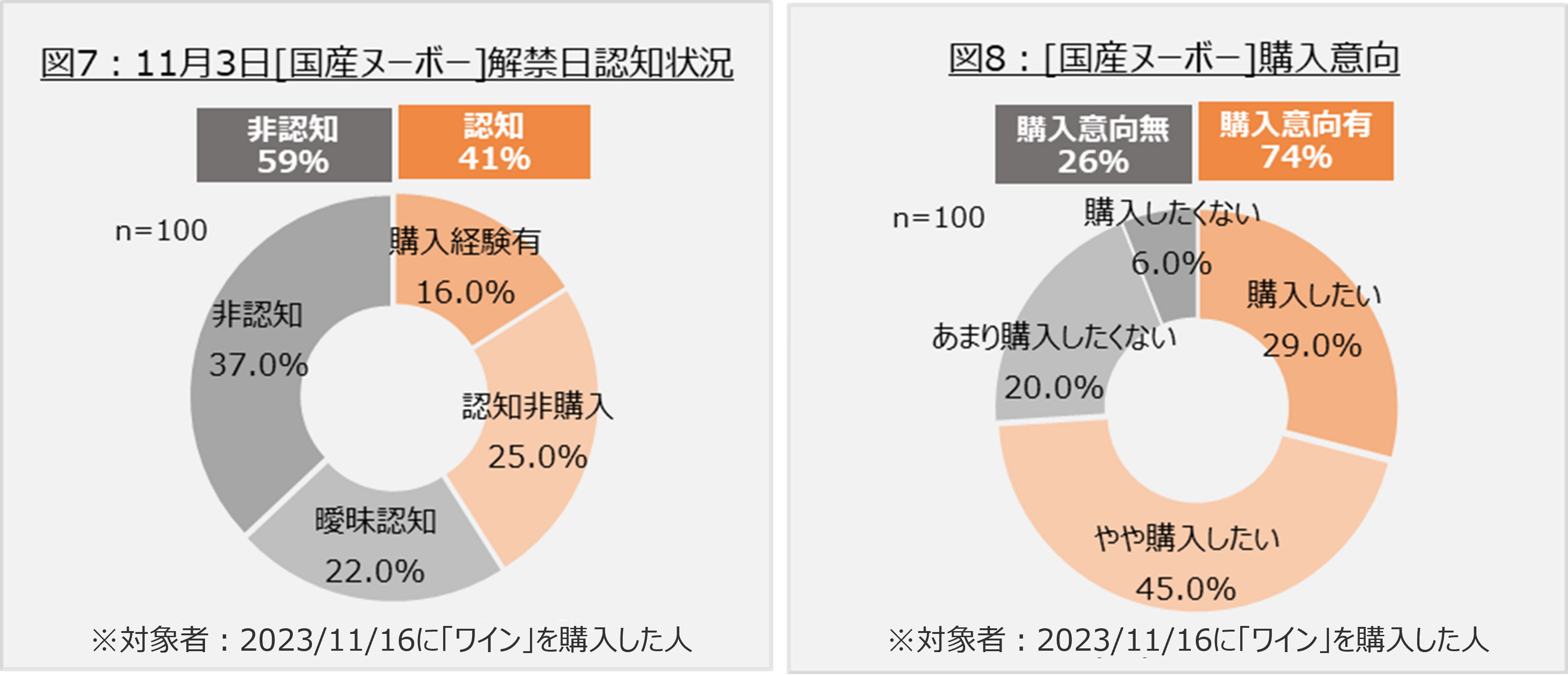 「国産ヌーボー」の認知度はまだ低い水準であるが、購入意向は高くポテンシャルあり