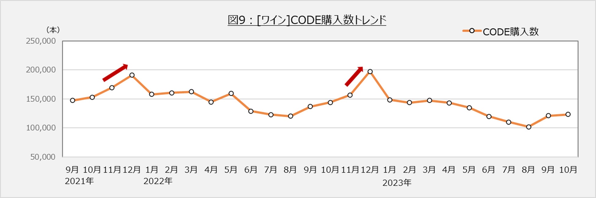 今年は、新型コロナの位置づけが5類に移行されてから初めてのボジョレー・ヌーボー解禁。昨年は輸送コスト増の影響で価格が高騰し取り扱わない業者も出たそうですが、今年はどのような状況だったのでしょうか?CODEアプリの購買データから見てみました。