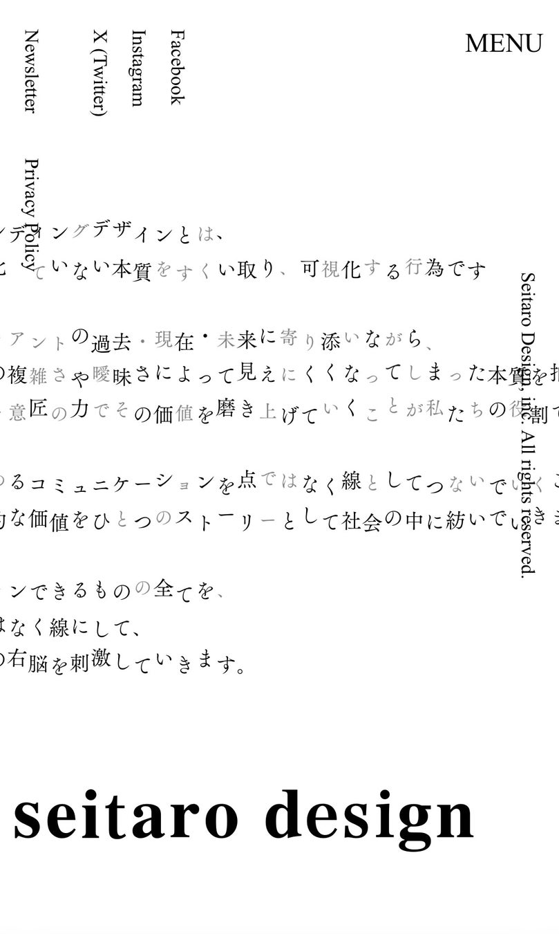 セイタロウデザインの強みであるブランディング事業に特化し、今まで手がけたプロジェクトをより直感的にわかりやすく訴求することにこだわりました。デザインは無駄を削ぎ落とし、シンプルを追求しながらも、サイト訪問時やページ遷移の度にアニメーションの演出が変わる実験的な仕様になっており、左脳を揺さぶるような余白のある世界観になっています。