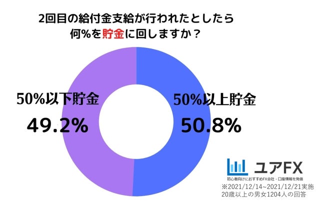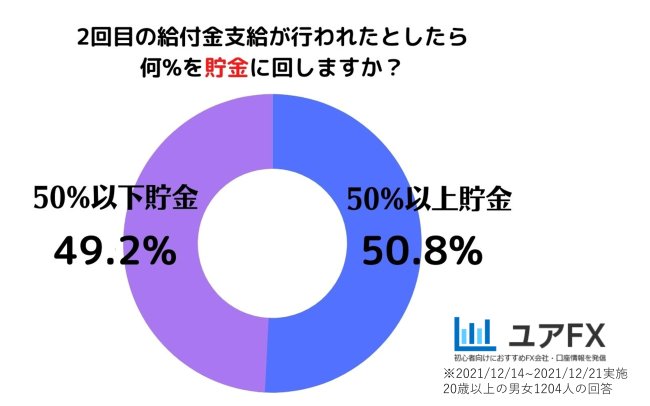 給付金を50%以上貯金する人が約5割で50%以下 貯金する人が約5割と回答が割れた