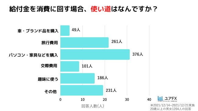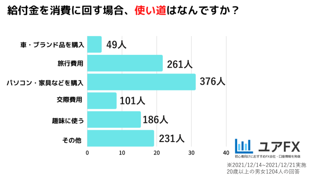 FXメディア「ユアFX」(https://www.trgy.co.jp/media/)は全国の20歳以上の男女1204人に給付金に関するアンケートを実施しました。