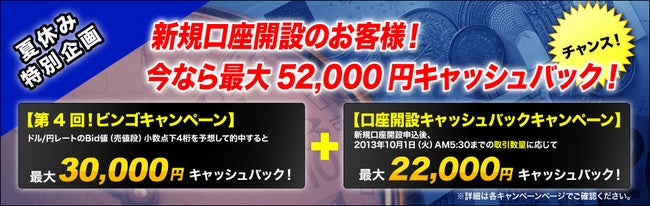 これにより、新規口座開設のお客様は最大で52,000円のキャッシュバックのチャンス!