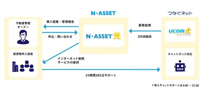 エヌアセットとつなぐネットが業務提携し 全戸一括型インターネットサービス「エヌアセット光」の提供を開始 ~入居者満足度向上につなげる新サービスを提供し不動産管理オーナーをサポート~
