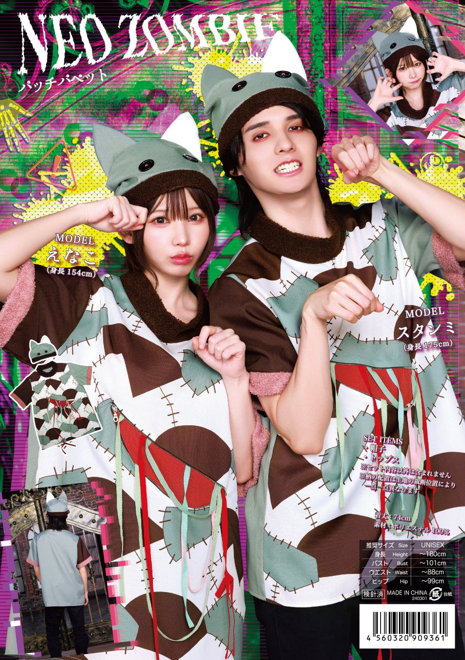 ネオゾンビシリーズは、「ハロウィンを彩る新たなゾンビシリーズ」をテーマに、従来のハロウィンを思い出すモチーフをイマドキなデザインに落とし込んだ、これからのシーズンにぴったりなアイテムです。レディース、メンズ、ユニセックスの3タイプの展開で、男女での集団仮装も楽しめます。