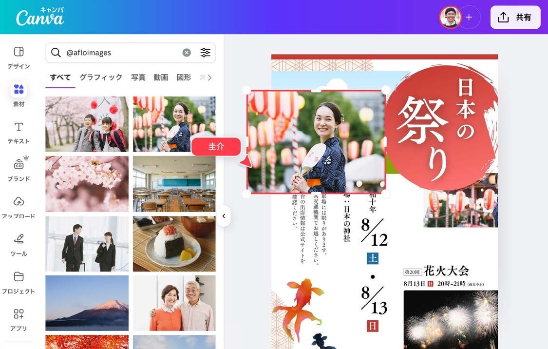 「Canvaという最先端のプラットフォームを通じて、世界中の方にアフロのコンテンツを使っていただける機会ができることを喜ばしく思っています。ぜひ日本らしいコンテンツを使ってデザインを彩っていただけたら幸いです。」