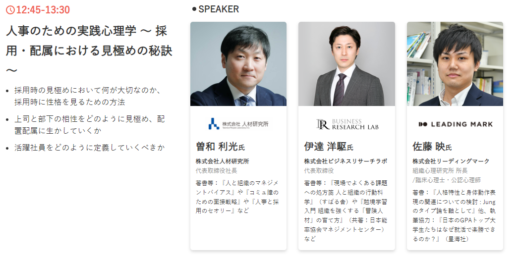 ③【人事のための実践心理学 〜 採用・配属における見極めの秘訣 〜】