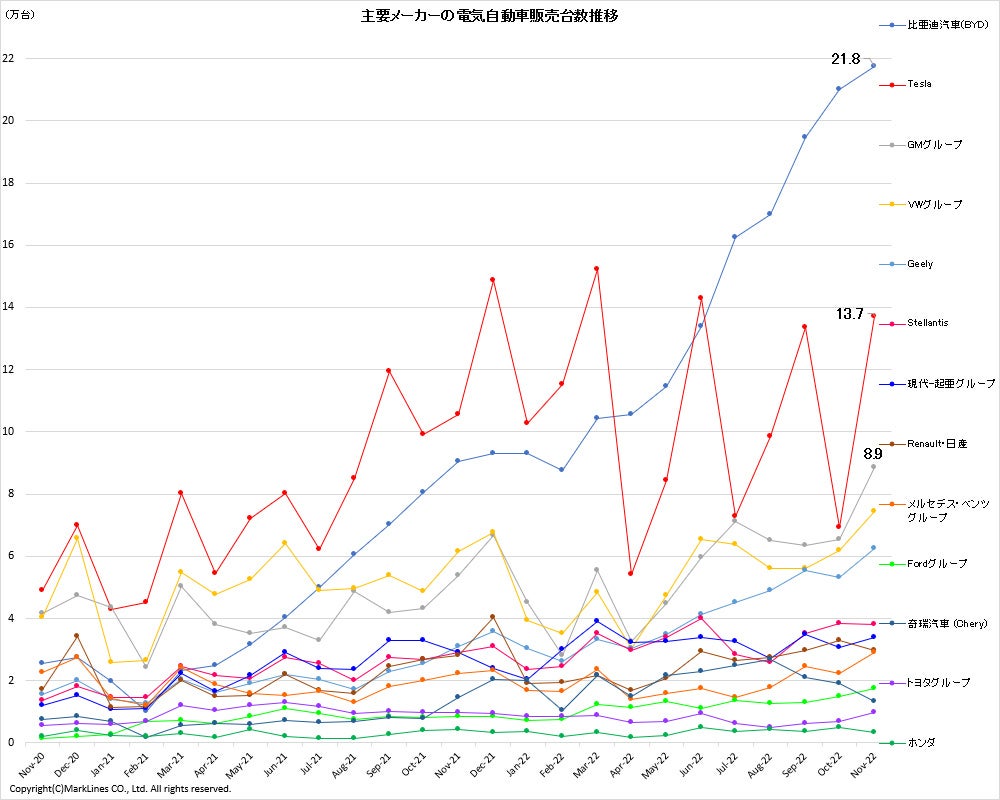 マークラインズ 電気自動車販売月報 2022年11月