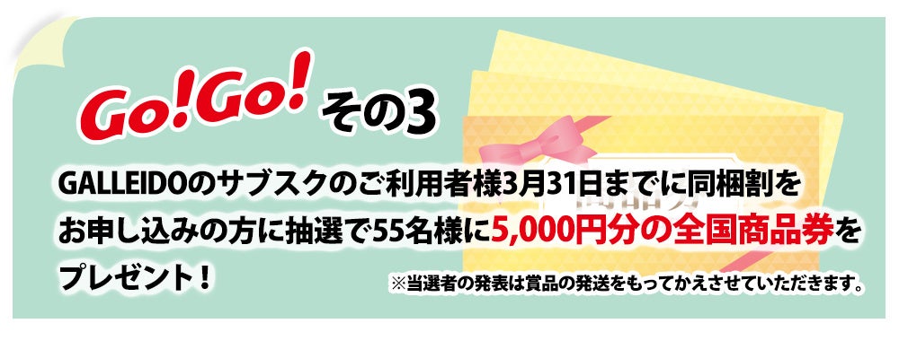 55,000名を突破したことを記念としてGALLEIDO GOGOキャンペーンを実施します!
