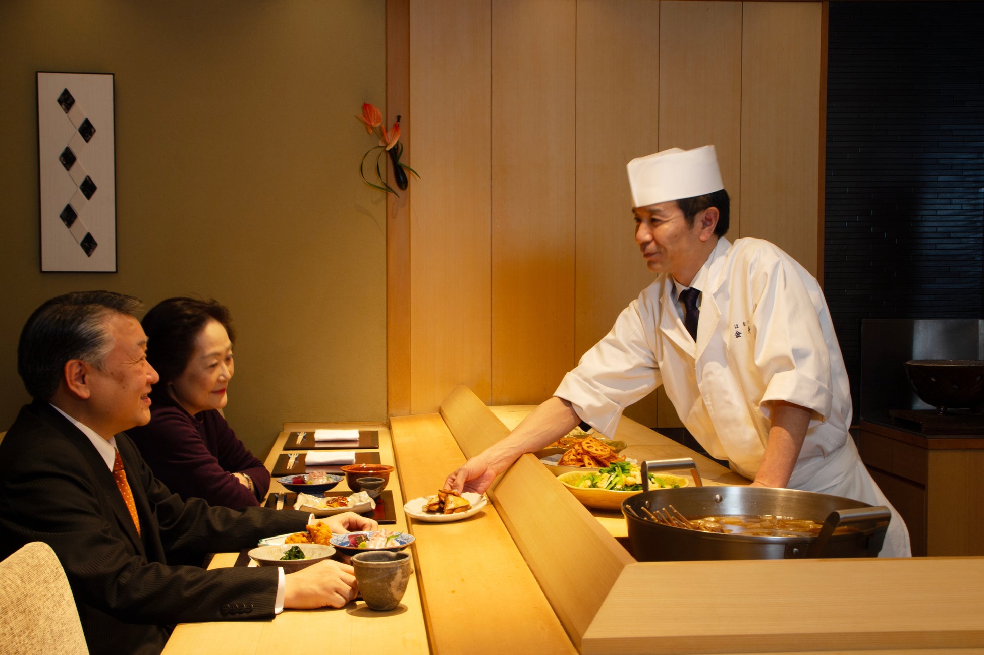 東京の数々の名店も仕入れを行う山口県萩市大坂屋商店から直送される新鮮な魚介や、豊かな自然が育んだ食材を料理長自ら目利き。旬のふぐを薄造りにしたふく刺しや、昆布だしで仕立て繊細な旨みを活かすふくちり鍋、歴史を記憶する華やかな岩国寿司、料理長金井がアレンジした山口の郷土料理など、昼も夜も福を重ねる万福会席をご用意いたします。