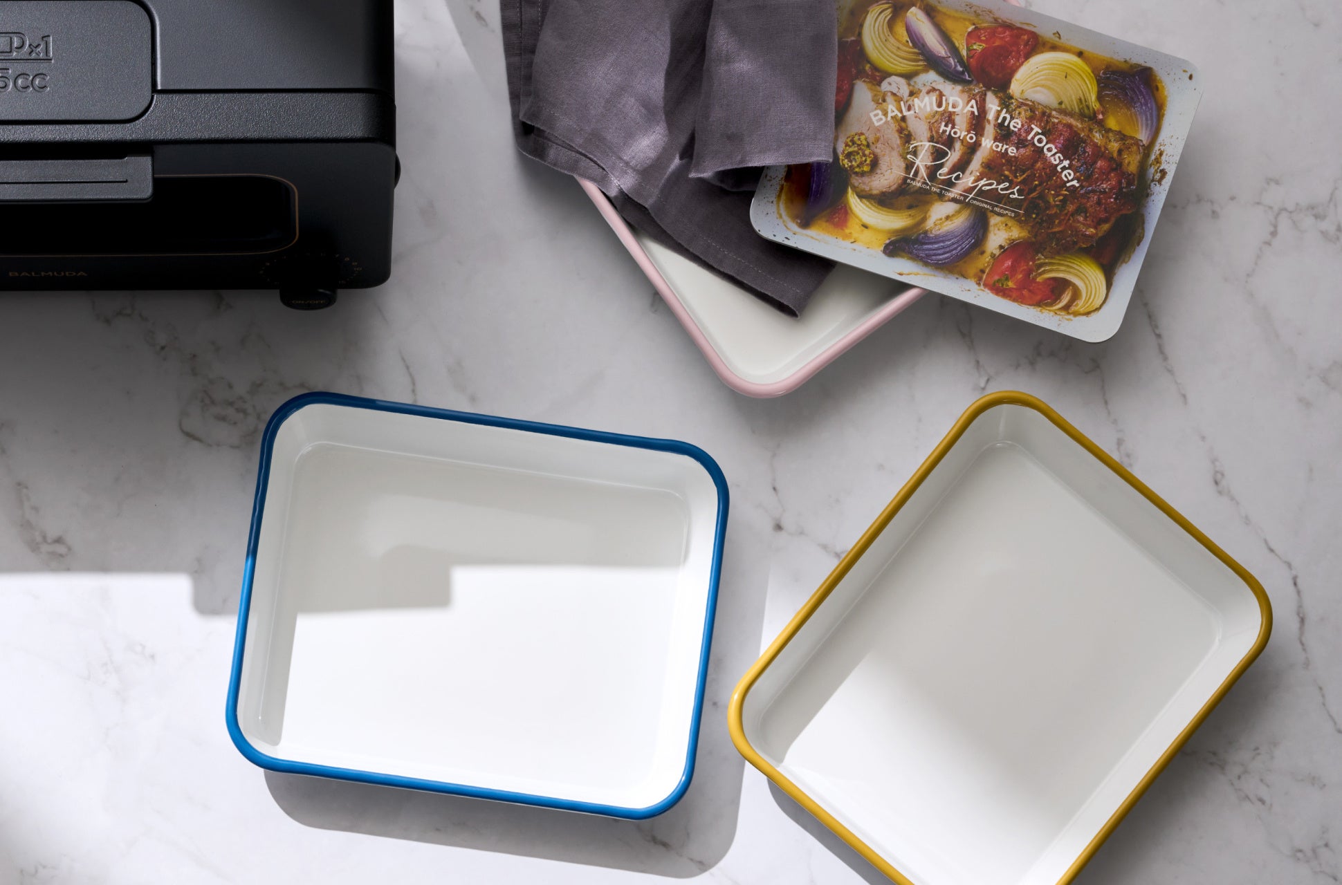 トースター調理の幅が広がることはもちろん、毎日の料理にも役立つ琺瑯バットです。ピンク・ブルー・キャメルの3色のうち、いずれか1色をお届けします。