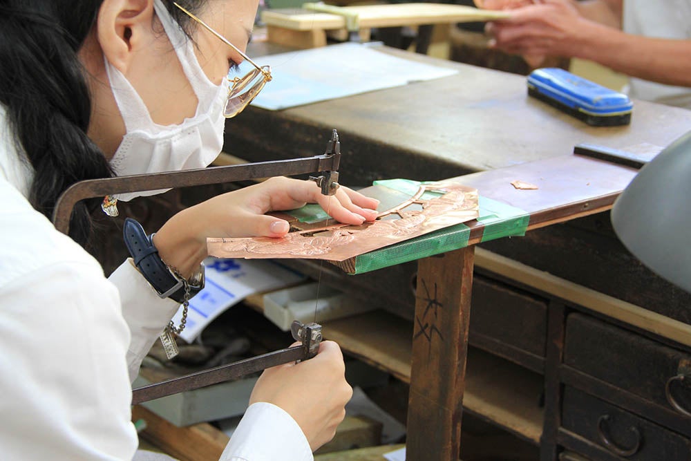 理論講義の単位修得後に実践編として学外実習を体験することで、知識と技術が連動し、手仕事を多角的に捉える視点を育みます。約40年間にわたって実施し、3,500名以上が受講。この講座をきっかけに多くの卒業生が伝統美術・工芸に携わっています。海外からの留学生にも人気の講座です。