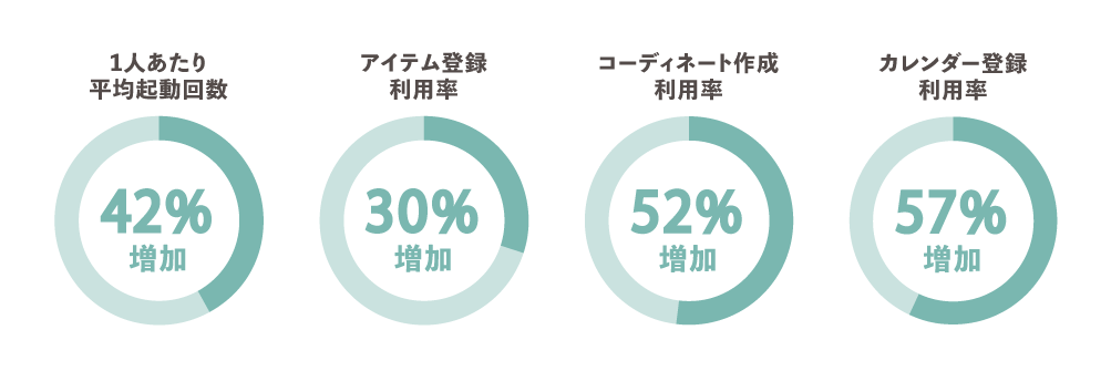 ・コーディネート作成の利用率:52%増加