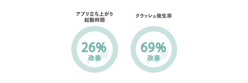 Flutterへの移行によりシステムの処理速度が改善されたことで、アプリを立ち上げてから画面が表示されるまでの起動時間が早まり、アプリ利用時のストレスにもなるクラッシュの発生率が激減しています。アプリ自体のパフォーマンスが大幅に向上したことで、より快適にご利用いただけるようになりました。