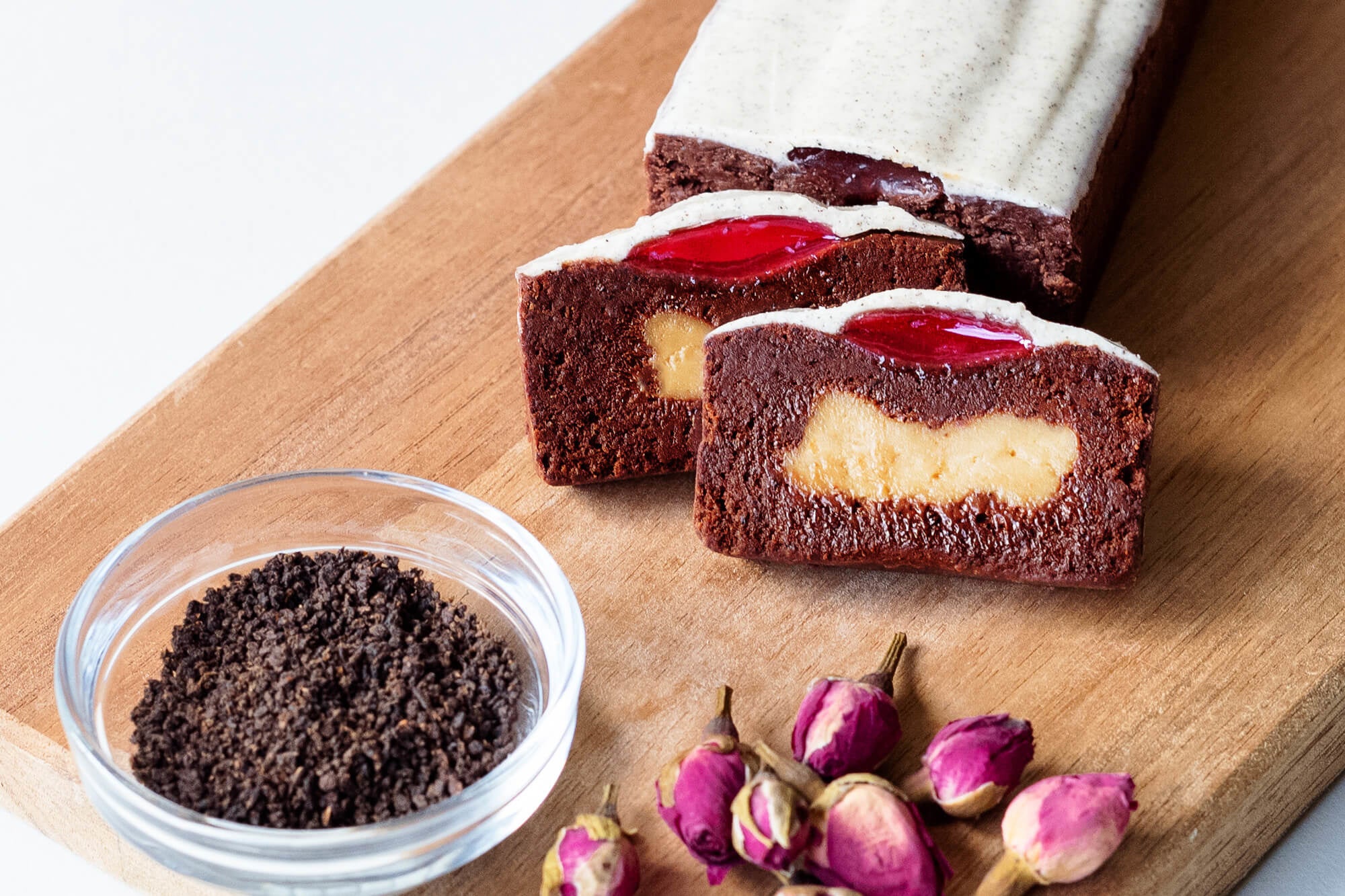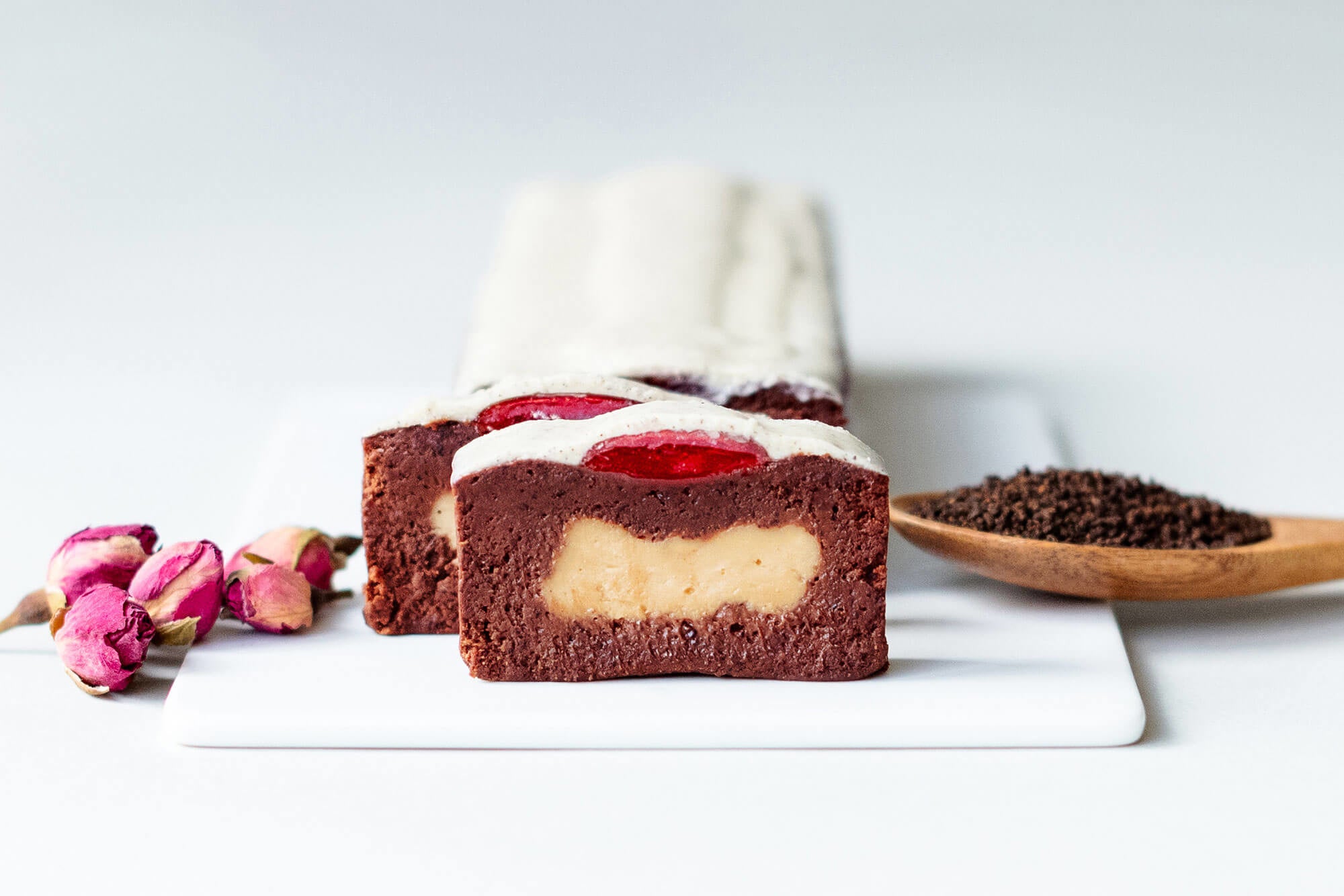 今回は人気の高い紅茶に加え、ローズのジャムを合わせ「茶と花」という他に類を見ないエレガントな構成の生ガトーショコラに仕上げました。