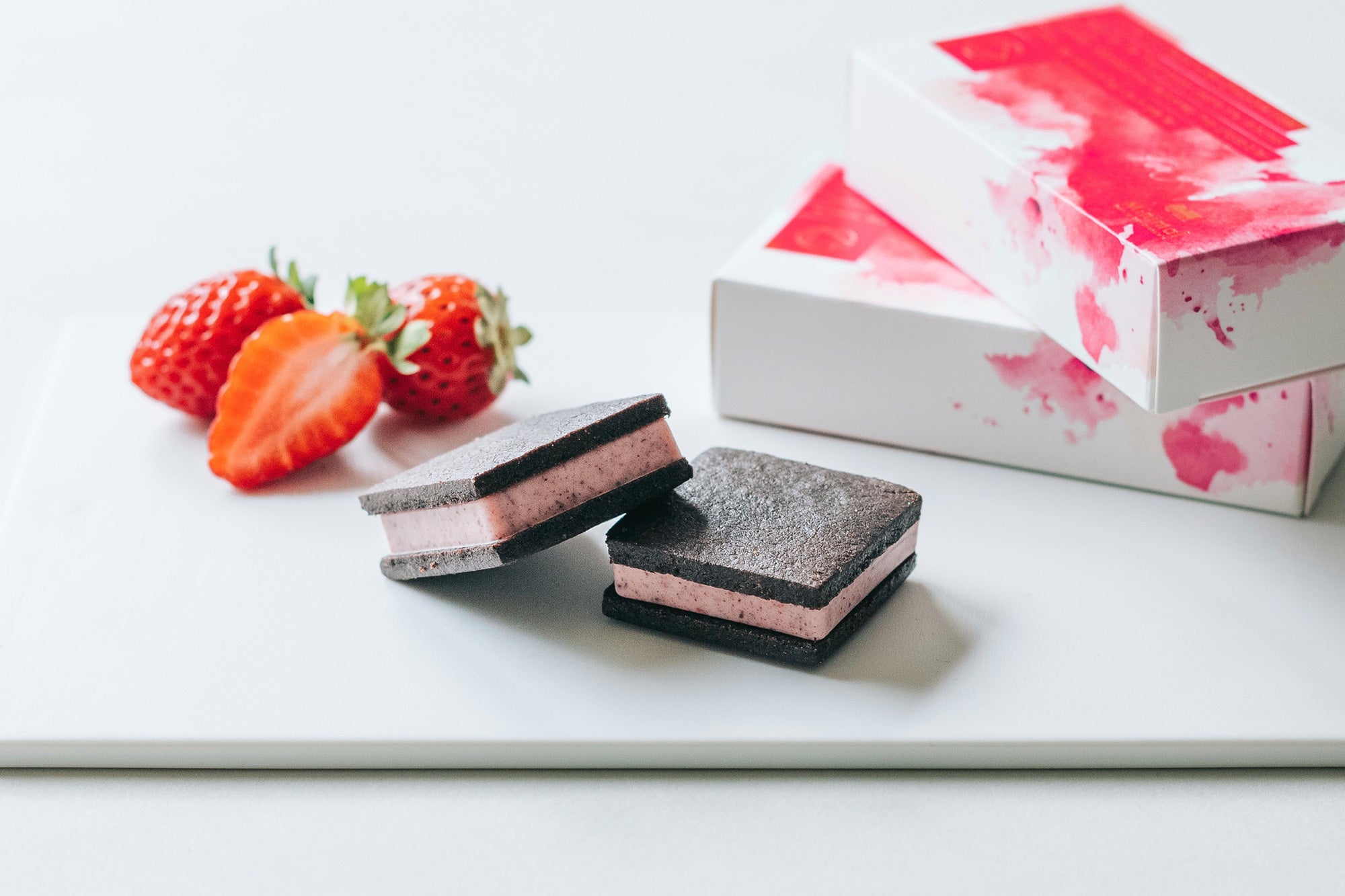 一口でしっかりと苺の味わいが広がるガナッシュは、ベリーの粒が舌に触れるたび酸味をしっかりと感じます。チョコレートは、ドミニカ共和国産のカカオ豆からカカオバターを搾った、端正なホワイトチョコレートを使用。ほのかな酸味があり苺の風味に寄り添うチョコレートは、苺の存在感を引き立てます。