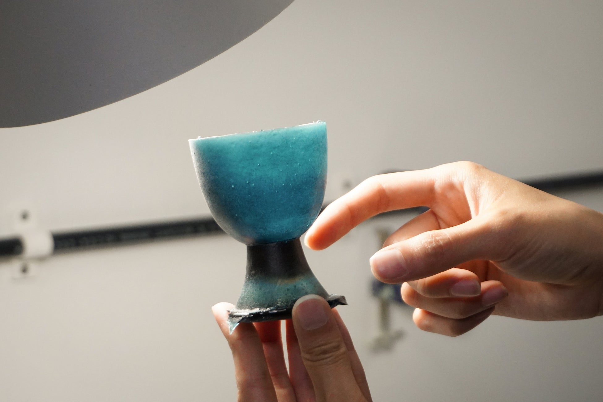 型を使い、窯でガラスを溶かすキルンワークという方法で形を成形し、ひとつひとつ手で確認しながら機械で削り、形を整え、仕上げます。使い勝手のバランスを考えながら、凛としたガラスの雰囲気を引き出します。
