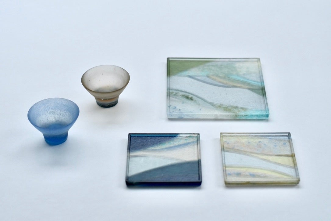 今回の個展では、 平皿、 グラスの器類の他に花器など、 100点ほどをご紹介予定です。