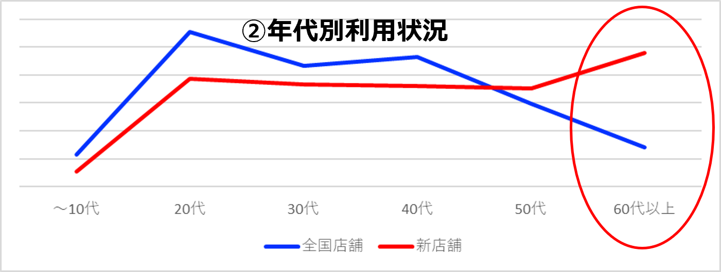 全国では20〜40代の利用割合が多いのに対し、新店舗では60代の利用割合が最多。困っていても放置していたスマホのお困りごとを相談いただくなど、シニア層の隠れたサポートニーズが見受けられます。
