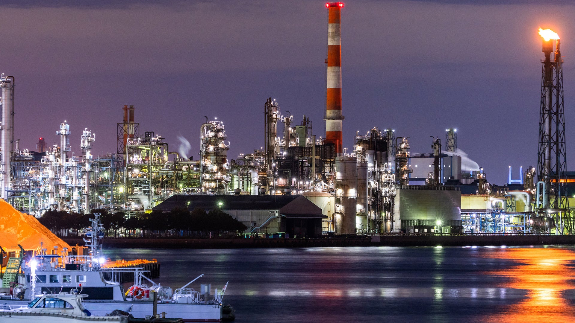 夕暮れ時のみなとみらいを出航し、一路工場夜景の名所・京浜工業地帯へ。夕景から夜景に変わりゆく工場夜景をお楽しみいただいた後は、横浜みなとみらいの大パノラマ夜景が待っています。