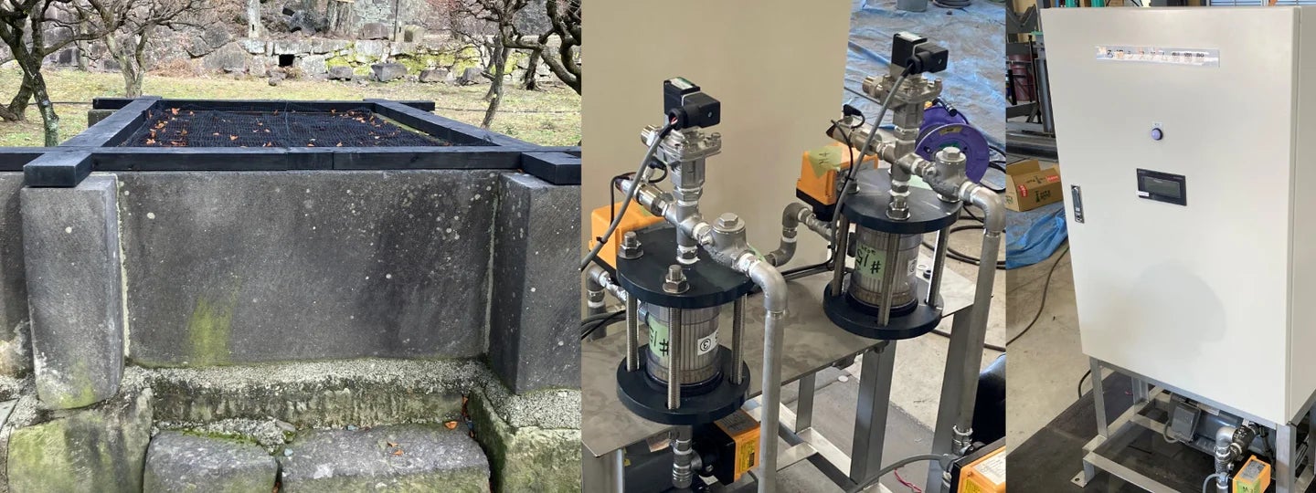 また、今年も雲海の生成には熊本城内にある「飯田丸古井戸」の水を一部使用します。いけうちが20年以上に渡り培ってきた水のろ過技術を活かし、ろ過装置(オートストレーナー、セラミックフィルター)を設置。井戸水から不純物を除去した清浄な水を生成し、雲海を発生させる供給水の一部として活用します。